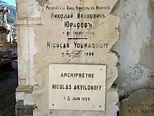 En , Nicolaï Ivanovitch dessine les plans de la future chapelle orthodoxe du cimetière du Vieux-Château à Menton dont la construction fut décidée par le Comte Nikolaï Alexeïevitch Protassov-Bakhmetev[7] et achevée en . La pierre tombale de Nicolaï Ivanovitch Yourassoff est actuellement dressée contre la façade à gauche du portique d'entrée, aux côtés de celle de sa petite-fille Rita.