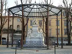 Eu égard à la fragilité et la nature du marbre utilisé pour le monument, celui-ci commençait à se détériorer. C'est alors que l'architecte Giuseppe Martelli (it), a été chargé, pour le protéger, de concevoir une verrière, qui évoque un kiosque victorien. Celle-ci a été édifiée en 1911[10].