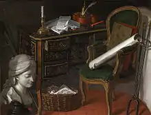- Palette d’artiste avec pinceaux, canne de peintre, couteau, documents et portefeuilles, 1756[16] ;