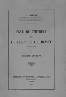 - Essai de synthèse de l'histoire de l'humanité, Paris, Gambiez, 4 volumes, 1928.