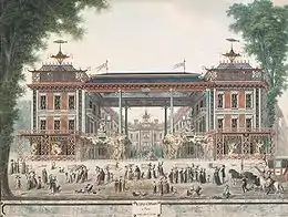 Lenoir profita également de la vogue, importée d'Angleterre, des luxueux établissements de plaisirs appelés « Vauxhalls ». Pour l'entrepreneur Le Bourguignon, il transforma le Vauxhall d'hiver créé en 1769 par les frères Ruggieri à la foire Saint-Germain. Puis, il prit l'établissement à son compte et le transféra, sous le nom de Panthéon d'Hiver au Palais-Royal, foyer de la prostitution et du jeu, sur un terrain biscornu dont il tira habilement parti, rue Saint-Thomas-du-Louvre. On y trouvait un salon chinois, un café turc, et l'architecte s'y réserva un appartement personnel. Les guides du temps décrivent des lieux « magiques, enchanteurs, galants et voluptueux »[19] L'entrée coûtait une livre seize sols mais on pouvait également s'abonner pour une somme mensuelle de cinq à neuf livres.