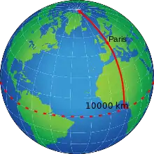 En mai 1790, l'Assemblée nationale constituante, sur proposition de Talleyrand, décide l'unification des poids et mesures. Elle en confie le calcul à une commission formée de Borda, Laplace, Lagrange, Monge et Condorcet. Le , sur la recommandation de Condorcet[pas clair], le choix est fait de la dix millionième partie du quart d'un méridien terrestre comme définition du mètre[30],[31],[Note 2] .
