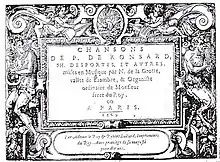 - Lesure 1955 n° 132, RISM LL 242a. Contient 16 chansons à 4 voix. Recueil réédité avec des remaniements en 1570 (n° 140), en 1572 avec deux chansons ajoutées (n° 162), en 1573 (n° 170), en 1575 (n° 186) et en 1580 (n° 239)[13]. Recueil publié dans The Sixteenth-century chanson, vol. XV (1992). Toutes les chansons de 1569 sauf la dernière sont reprises dans le Livre d'airs de cour miz sur le luth par Adrian Le Roy (Paris, idem, 1571).