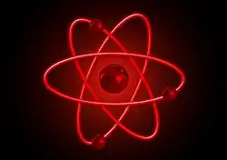 Ainsi, dès 1913, Bohr forge le premier modèle quantique cohérent de l’atome[10]. Sa structure globale – électrons tournant autour du noyau sur des orbites circulaires possédant chacune une énergie précise – et l’explication du passage d’un électron d’une orbite à une autre, permettent d’une part d’expliquer comment le rayonnement électromagnétique (dont la lumière) est émis par la matière, et d’autre part de résoudre deux énigmes scientifiques vieilles de presque un siècle : les raies spectrales et la table périodique des éléments de Mendeleïev. Bien que révisé à partir des années 1920, ce modèle a également permis des découvertes cruciales, dont le spin des électrons, le principe d’exclusion (par Wolfgang Pauli), le laser et le quatrième état de la matière ou état plasma[10].
