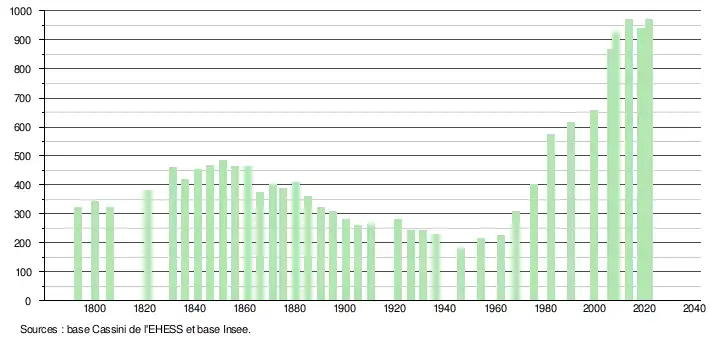 - Population municipale légale en vigueur au 1er janvier 2024, millésimée 2021, définie dans les limites territoriales en vigueur au 1er janvier 2023, date de référence statistique : 1er janvier 2021.