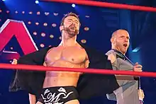 - Top rope handstand evasion avec un double foot mule kick[5]