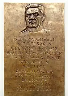 - (de) Cet article est partiellement ou en totalité issu de l’article de Wikipédia en allemand intitulé « Nikolai Erastowitsch Bersarin » (voir la liste des auteurs).
