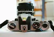 - levier de surimpression (petit disque métallique derrière le barillet des vitesses) permettant d'armer l'obturateur sans avancer le film ;
