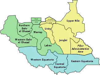 La région est composée des États de Jonglei, Unité, et du Nil Supérieur, et des zones administratives de Ruweng (en) et Pibor (en). Elle possède une frontière avec l'Éthiopie à l'est et le Soudan au nord.
