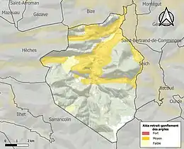 Le retrait-gonflement des sols argileux est susceptible d'engendrer des dommages importants aux bâtiments en cas d’alternance de périodes de sécheresse et de pluie. 28,1 % de la superficie communale est en aléa moyen ou fort (44,5 % au niveau départemental et 48,5 % au niveau national). Sur les 218 bâtiments dénombrés sur la commune en 2019, 195 sont en aléa moyen ou fort, soit 89 %, à comparer aux 75 % au niveau départemental et 54 % au niveau national. Une cartographie de l'exposition du territoire national au retrait gonflement des sols argileux est disponible sur le site du BRGM[39],[Carte 2].