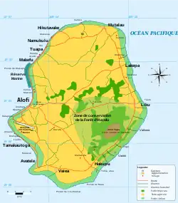 Le gouvernement de Niue consacre une attention considérable à la protection de l'environnement[25], et le pays dispose de plusieurs réserves naturelles. La plus grande d'entre elles, la zone de conservation de la forêt d'Huvalu, est située dans la partie orientale de l'île entre les villages de Liku et Hakupu et sa superficie de 54 km2 abrite environ 188 000 animaux.