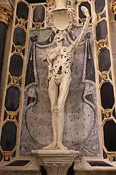 Sur la pochette du DVD Stade de France, un montage photo montre Mylène Farmer chantant C'est dans l'air, devant les deux immenses reproductions du Transi de René de Chalon de Ligier Richier.
