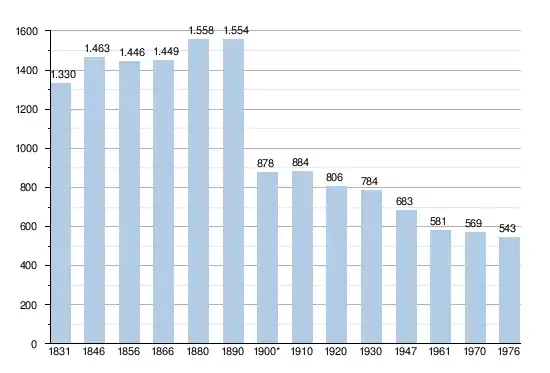 - Sources:INS, Rem:1831 jusqu'en 1970=recensements, 1976= nombre d'habitants au 31 décembre