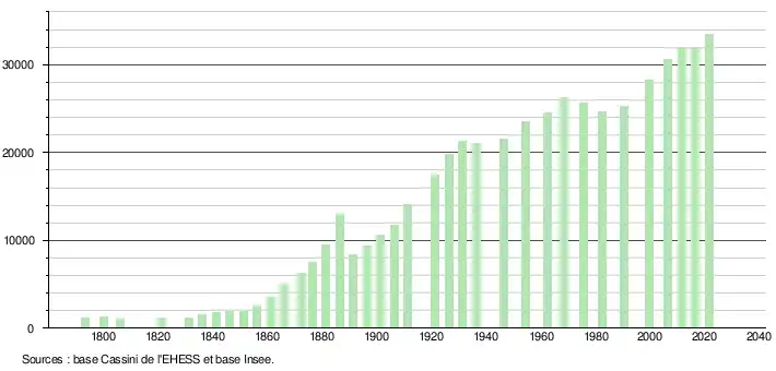 33 472 hab. (2021 en augmentation de 6,09 % par rapport à 2015)