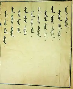 En Unicode a été introduit un "marqueur Sibe de limite de syllabe mongole" dans l'écriture Sibe et se retrouve dans la littérature mandchoue. Ce marqueur a le graphème de la forme médiane de la lettre A, il est placé sur une frontière de syllabe. On peut ainsi distinguer Guangying (Guwang'ing) de Guanjing (Guwanging), etc.