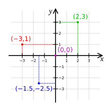 Un nombre réel est un nombre que l'on peut représenter comme un point sur un axe à une dimension. On trouve le zéro, les nombres entiers naturels comme le zéro, 1, 2, 3..., les nombres relatifs négatifs comme -1, -2, -3,..., les nombres rationnels comme 2/3, 4/9, -8/11, etc., et d'autres nombres réels comme (racine de 2). Vu que l'espace est en une dimension (c'est une ligne), un tel nombre réel se représente par une seule coordonnée : le nombre lui-même.