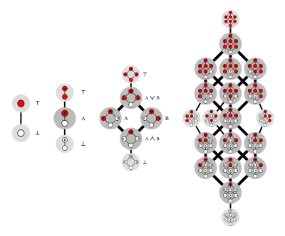 En mathématiques, les nombres de Dedekind , définis en 1897 par Richard Dedekind[1], dénombrent les fonctions booléennes croissantes à variables. De manière équivalente, est le nombre d'antichaînes formées avec les parties d'un ensemble à éléments, ainsi que le nombre d'éléments d'un treillis distributif libre à générateurs, ou encore, diminué de 1, le nombre de complexes simpliciaux abstraits sur un ensemble à éléments.