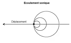 Le cas sonique défini précédemment comme frontière entre le subsonique et le supersonique n'a pas de réalité physique : il est remplacé par une zone de transition assez large, dite transsonique, dans laquelle les phénomènes sont particulièrement compliqués.