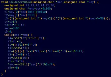 Le nombre premier ci-dessous, contenant 1811 chiffres, découvert par Phil Carmody, peut représenter un programme exécutable qui lit les données chiffrées par un procédé CSS[7].