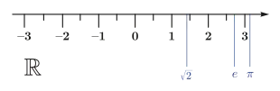 - les nombres calculables, qui comprennent la quasi-totalité des nombres utilisés en science et en ingénierie (notamment e et π).