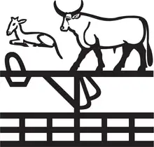 Le taureau[note 2], symbolisant la puissance, est représenté pour le « nome du Veau de la Vache divine », précédé d'un veau sur un pavois[note 3], le tout sur le déterminatif des noms de provinces[note 4].