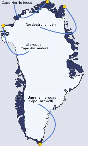 Nordøstrundingen et les trois autres points extrêmes du Groenland