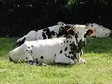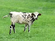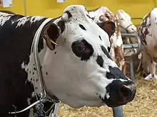 La Normande est une race bovine française originaire de Normandie. C'est une vache de grande taille, qui a une robe caractéristique, blanche (caille) avec plus ou moins de tâches blondes ou bringées (marron foncé)[1]. Autre signe distinctif de la Normande : ses « lunettes » (tâches autour des yeux) qui lui confèrent une résistance exceptionnelle à l'ensoleillement.