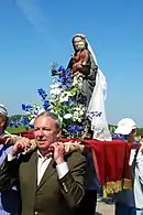 Jadis portée par les jeunes filles[3], elle est aujourd'hui portée en procession par quatre hommes depuis l'église Saint-Barthélemy de Bousval jusqu'à la Chapelle du Try-au-Chêne.