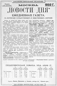 Anton Tchekhov a publié dans les pages des Novosti dnia une de ses premières nouvelles, Drame à la chasse (ru)(«Драма на охоте»)[3].
