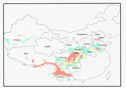 En Chine même, Feng Xiaojia et al [13] (2018) ont étudié la structure génétique de 31 populations de noyers sur le territoire chinois, en utilisant 22 marqueurs microsatellites. Durant le dernier interglaciaire, la distribution du noyer commun se rétrécit considérablement à une barre oblique coupant le territoire chinois actuel[n 4] en deux, allant de Pékin au Nord-Est au Yunnan au Sud-Ouest, correspondant aux trois centres de diversité actuelle :