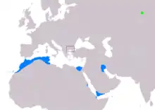 Cet oiseau nichait en Sibérie et hivernait notamment au Maroc, dans la lagune de Merja Zerga[2]. Des données hivernales existent également dans de nombreux pays méditerranéens. Des données incertaines récentes en Mésopotamie et dans le Golfe Persique suggéraient l'existence de sites d'hivernage inconnus mais les recherches entreprises n'ont pour le moment pas abouti[3]. En migration, l'espèce fréquentait l'Europe de l'Est, de l'Italie à la Grèce, et était même régulière dans le midi de la France au XIXe siècle[4]. Il franchit encore la Méditerranée avec une halte sur le site des Salines d'Ulcinj (Monténégro), mais en 2009-2019 ce dernier est lui-même menacé par des projets immobiliers et touristiques[5],[6].