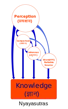 Pour le nyāya, les quatre fondements de la connaissance sont[7] :