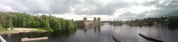 Le château de Saint Olaf est construit par Erik Axelsson Tott en 1475 afin de protéger la région de Savonie et de contrôler la frontière instable entre le royaume de Suède et son adversaire, la Russie. Olavinlinna (littéralement, la forteresse d'Olaf) est l'un des trois châteaux en pierre encore debout dans la Finlande d'aujourd'hui. La ville est ensuite fondée par Per Brahe en 1639 autour du château. Elle végète et est régulièrement détruite lors des guerres, comme lors de la guerre russo-suédoise de 1741-1743 lors de laquelle l'armée russe conduite par Peter Lacy prend finalement la place forte.