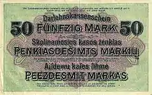 De fait, cette monnaie devint alors rapidement un élément clé de l'économie, apportant les capitaux industriels requis dans la région, et l'autonomie économique qui va avec. Un des principaux objectifs de l'administration de Ludendorff était l'exploitation des ressources - notamment agricoles - de ces territoires, mais également de sa main d'œuvre. Les réquisitions opérées sur les récoltes ou le bétail, tout comme l'enrôlement de force de travailleurs ouvriers étaient monnaie courante[12]. À Kaunas, un des organismes de l'autorité d'occupation devait ainsi s'assurer que dans le Militärstaat Ober Ost, les intérêts de l'armée passent toujours avant les intérêts locaux.