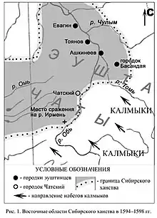 Aux XIIIe – XVIIe siècles, la région est occupée par les peuples Tatars et Khantys[6]. Surtout, aux XVe et XVIe siècles, la région est dominée par le khanat de Sibérie (Sibir'). Mais en 1582-1585, avec le début de la conquête de la Sibérie par Ermak Timofeïévitch avec la conquête du Khanat de Sibir, le Khanat disparaît au profit du Tsarat de Russie. Après la bataille d'Irmen en 1598, les Tatars de Baraba acceptent de se soumettre aux Russes et deviennent citoyens russes[7].