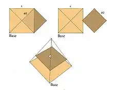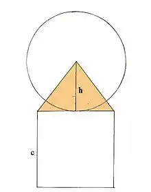 L'aire des quatre faces de la pyramide, si l'on néglige le phénomène de creusement des faces au niveau de l'apothème (voir Le phénomène d'apothème), est donnée par a×c/2 soit 356,09×440/2 = 78 339,8 coudées2 et h2 = 2802 = 78 400 coudées2. Par conséquent ces deux valeurs sont égales à 2×(78400 – 78339,8)/(78400 + 78339,8) = 0,08 % près.