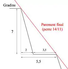 - Concernant le nombre d'or, la proportion de 14/11 entraîne un rapport apothème/demi-base égal à , proche de [2].
