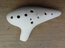 L'ocarina est un résonateur de Helmholtz[1] et est classé dans la famille des flûtes globulaires à conduit car le jeu se fait en soufflant dans une embouchure de flûte et non comme pour le xun chinois en soufflant sur un trou ouvert. Son corps est muni de trous de jeu permettant de produire différents sons.