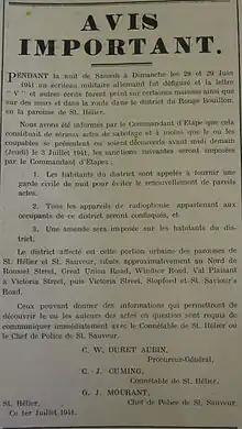 - (en) Cet article est partiellement ou en totalité issu de l’article de Wikipédia en anglais intitulé « Occupation of the Channel Islands » (voir la liste des auteurs).