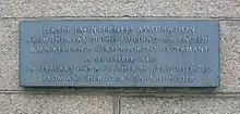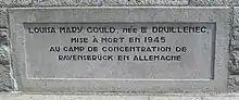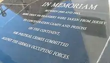 - Texte de la plaque en anglais : « In memoriam: between 1940 and 1945, more than 300 islanders were taken from Jersey to concentration camps and prisons on the continent, for political crimes committed against the German occupying forces. »