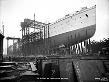 La construction se fait sous la supervision du surintendant de marine de la compagnie, le capitaine John G. Cameron et de l'Amirauté britannique, qui compte utiliser le navire comme croiseur auxiliaire en temps de guerre. Elle implique des moyens inédits pour les chantiers. Un portique de 500 tonnes est en effet construit pour abriter la coque en construction et supporter grues, lampes et machines à riveter. L'Oceanic est par ailleurs le premier navire construit à l'aide de riveteuses hydrauliques, qui facilitent le travail des quelque 1 500 ouvriers travaillant sur le paquebot. Les chantiers sont alors très actifs, puisqu'ils achèvent également le Cymric, et doivent également construire les cinq navires de classe Jubilee. Ces constructions contribuent à dynamiser la région de Belfast[1].