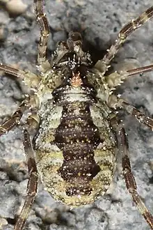 Son corps est oblong à ovoïde, l'abdomen proéminent. Ses yeux sont petits, globuleux et insérés sur la face dorsale. Ils sont entourés de petites glandes sécrétrices pour se protéger. Ses chélicères sont généralement dissimulées derrière les pédipalpes repliés et se composent d'au moins 5 articles, les 2 derniers étant plus longs.