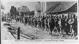 De plus, la conquête de territoires russes, la Pologne russe, la Lituanie et la Courlande, incite l'Allemagne et l'Autriche-Hongrie à mettre en place une administration plus pérenne des territoires conquis. Sont ainsi mises en place deux structures destinées à la gestion administrative des territoires conquis sur l'empire russe : le gouvernement général de Varsovie et l'Oberost[15]. Ces territoires font aussitôt l'objet de tractations entre les deux alliés, Burian, ministre austro-hongrois des affaires étrangères, se montrant partisan d'un État polonais autonome sous contrôle austro-hongrois tandis que l'Allemagne étendrait sa tutelle sur les pays baltes[16],[17].