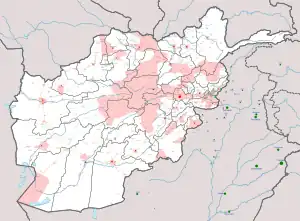 Au , les talibans contrôlent 223 districts sur les 407 du pays[23] mais aucune des trente-quatre capitales provinciales[24].