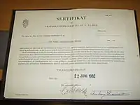 Le Brevet d'Officier de première classe était nécessaire pour assurer les fonctions de Chef Radio sur les Paquebots et les Ferries.