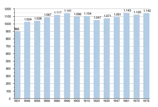 Les chiffres des années 1831 à 1970 tiennent compte des chiffres des anciennes communes fusionnées.