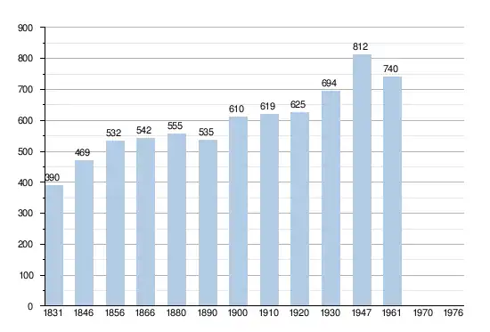 • Sources:INS, Rem:1831 jusqu'en 1970=recensements, 1976= nombre d'habitants au 31 décembre