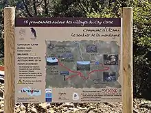 - Un circuit de promenade intitulé Le Sentier de la montagne a été récemment mis en place. Long de 3,9 km pour une durée aller-retour de 1 h 30 et un dénivelé de 120 m, il fait le tour des principaux points de vue autour du village et passe par des points d'intérêts dont la chapelle San Quilico.