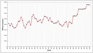 La plus forte affluence moyenne à Old Trafford en championnat est de 75826 lors de la saison 2006-2007[76]. La saison suivante, le record du total d'affluence est battu avec 2 197 429 personnes observant Manchester United atteindre le sixième tour de la Coupe d'Angleterre, remporter le championnat d'Angleterre et la Ligue des champions[77]. La saison avec la moyenne la plus basse est la saison 1930-1931 pendant laquelle seulement 11 685 spectateurs sont présents en moyenne[78].
