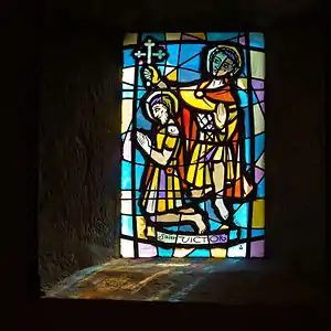 - Les vitraux ont été réalisés selon la technique traditionnelle de verre antique, traits, cuisson et montage à la résille de plomb.
